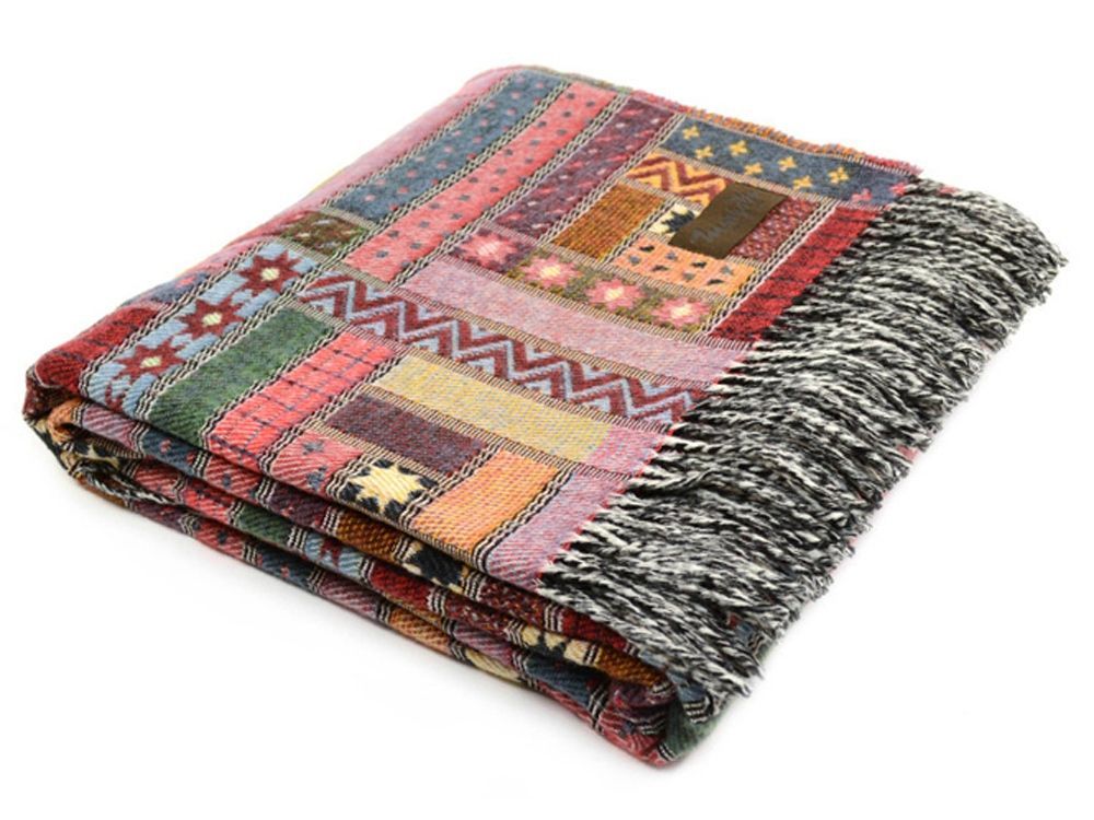 • Плед в стиле «пэчворк» украшен бахромой, оригинальный дизайн органично впишется в интерьер и станет стильным украшением вашего дома. Постелите плед на диван или на кровать, возьмите с собой на дачу или используйте плед-покрывало в кресле-качалке.