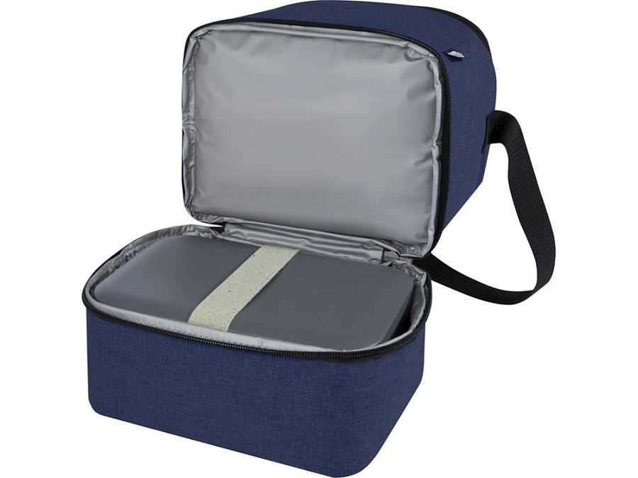 Сумка-холодильник Tundra выполнена из переработанного материала, в ней достаточно места для всех ваших продуктов, которые вы берете на обед. Имеет одно верхнее изолированное отделение на молнии и одно нижнее изолированное отделение на молнии. Нижнее отделение идеально подходит для бенто-бокса, а в переднем прорезном кармане удобно носить защитную маску и другие небольшие предметы. Подкладка и внешний слой сумки-холодильника PEVA изготовлены из переработанного РЕТ-пластика. 600DПереработанный Полиэстер.