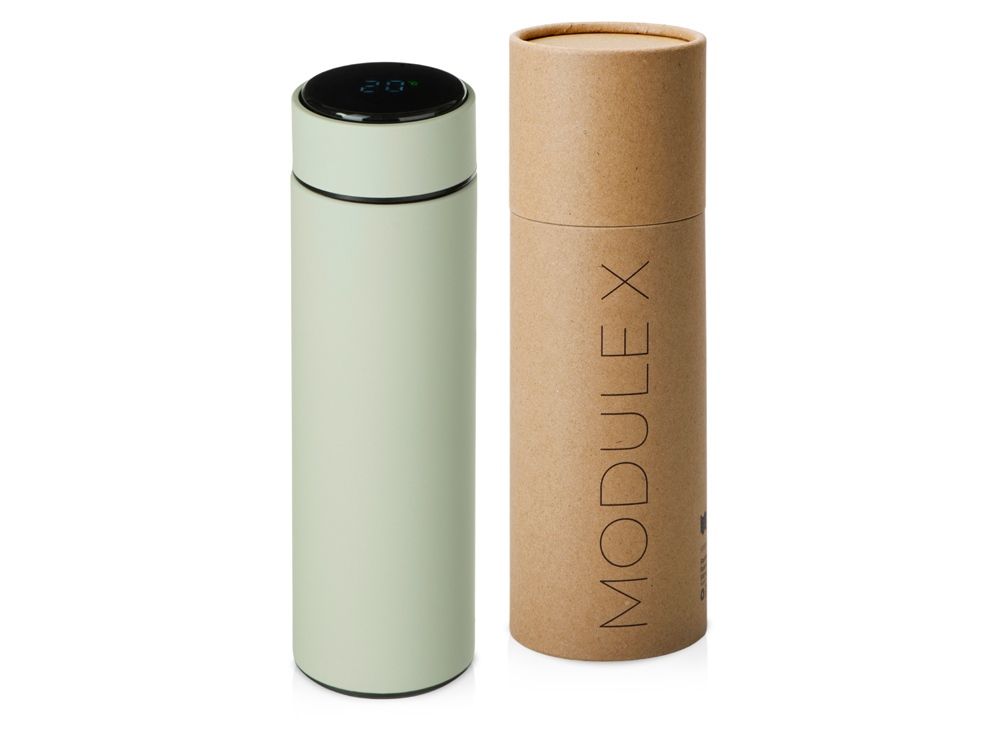 Вакуумный термос «Module X» не только сохраняет ваши напитки горячими, но и показывает, насколько они горячие! Уникальная особенность термоса — это сенсорный индикатор температуры, расположенный в крышке. Чтобы узнать температуру внутри термоса, достаточно прикоснуться к поверхности крышки. Батарейку CR2032 по истечении срока работы (1-2 года) можно заменить — для этого открутите верхнюю часть крышки против часовой стрелки и аккуратно поменяйте элемент питания.