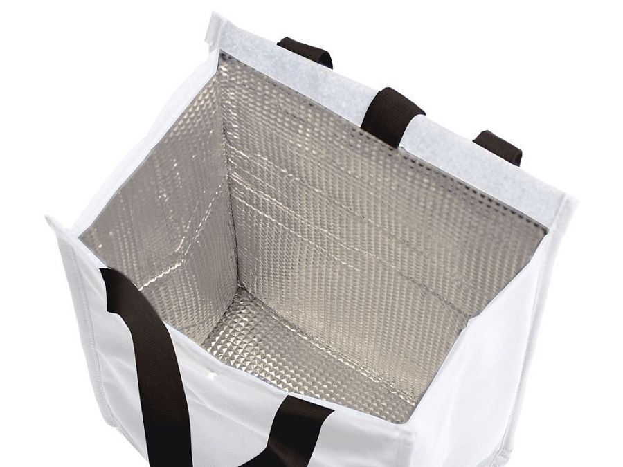 Вместительная сумка-холодильник, в том числе подходящая для винных бутылок. Внутренняя подкладка из пены толщиной 2 мм. Закрывается на плотную липучку. Складывается и застегивается на кнопку. Удобные прочные ручки для переноски.
