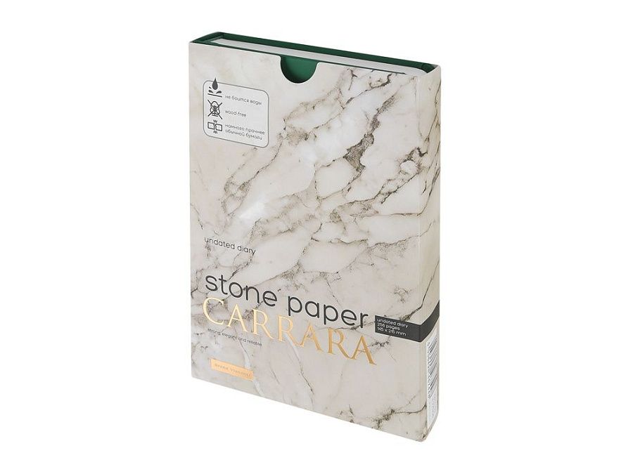 Уникальность недатированного ежедневника Carrara от Bruno Visconti — в его блоке. Он изготовлен из каменной бумаги плотностью 144 г/кв.м, отличающейся особой гладкостью и повышенной прочностью. Она не боится воды и пролитого кофе, достаточно просто протереть сухой салфеткой.