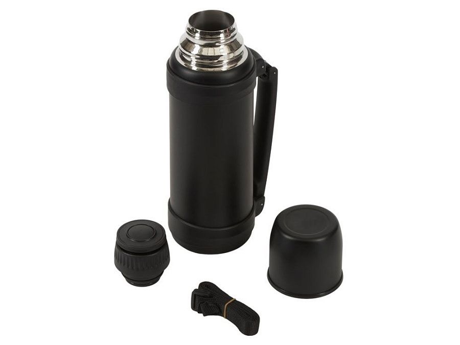 Ручка складывается для экономии места в рюкзаке. Также в комплекте идёт ремешок для удобного ношения термоса. Крышку можно использовать как чашку.