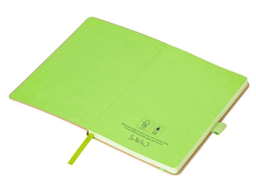 Бумажный блок на 80 листов выполнен из бумаги, полученной из древесины из специальных восполняемых лесных ресурсов, имеет сертификат FSC, международной некоммерческой организации лесного попечительского совета. Линовка - выполнена специальными экочернилами, при изготовлении которых используется меньшее количество энергии.