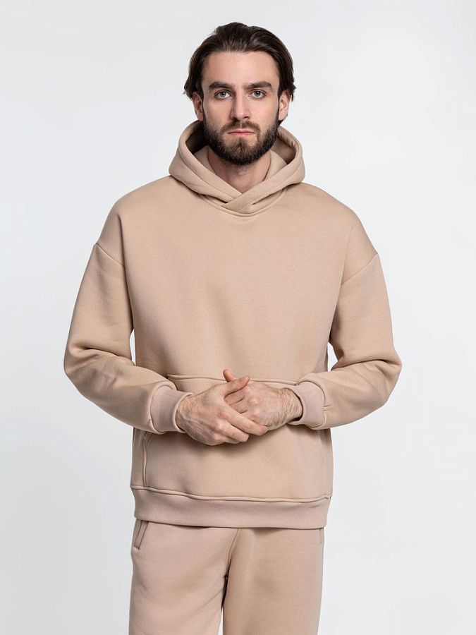 Худи унисекс со спущенным плечом и карманом-кенгуру.