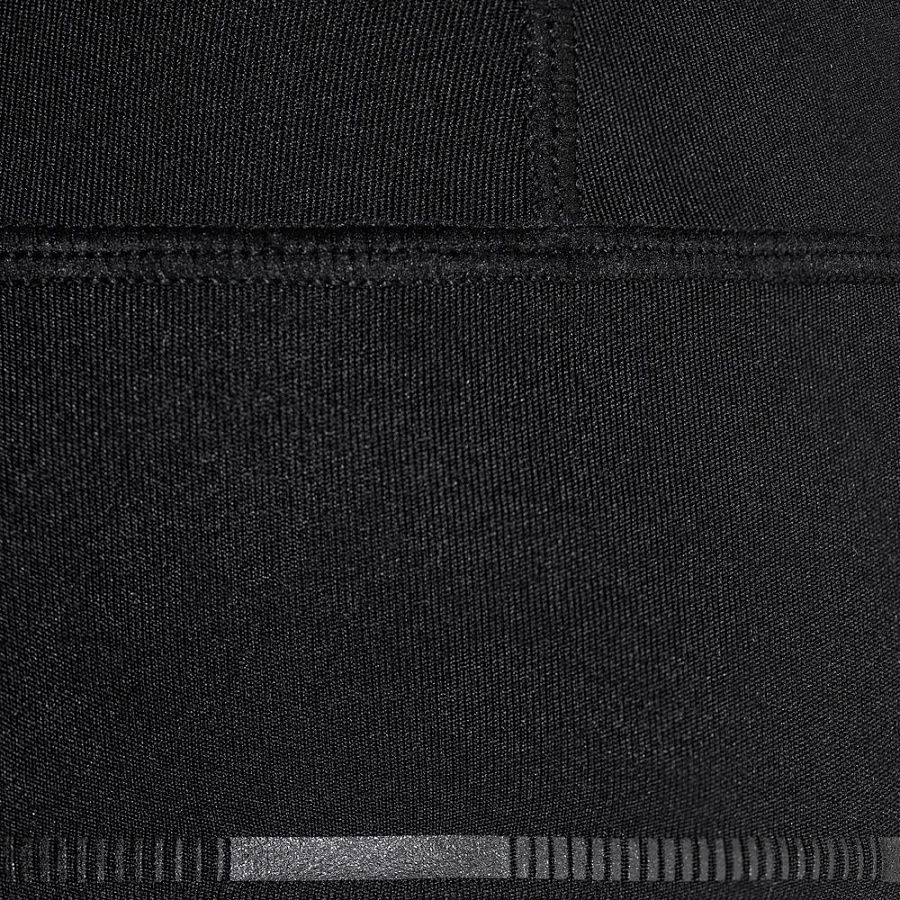 Шапка выполнена в черном цвете, но имеет светоотражающую полосу вдоль края, что улучшает видимость спортсмена в условиях плохой освещенности.