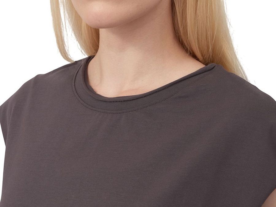Расслабленная посадка модели и необработанные швы проймы и края горловины позволяют чувствовать себя комфортно и оставаться на волне трендов.