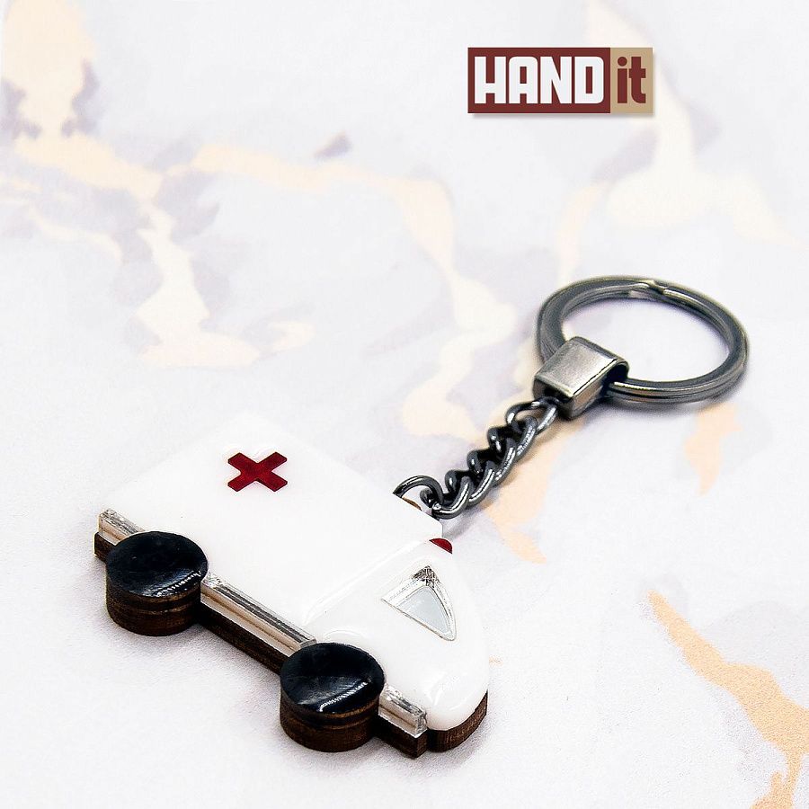 Брелок "Скорая помощь", серия Industrial- изделие с отраслевой тематикой, сделано вручную российскими мастерами. Брелок имеет интересный и оригинальный дизайн, который отличается от обычных брелоков. Он отлично подойдет для продвижения вашего бренда или целой отрасли.