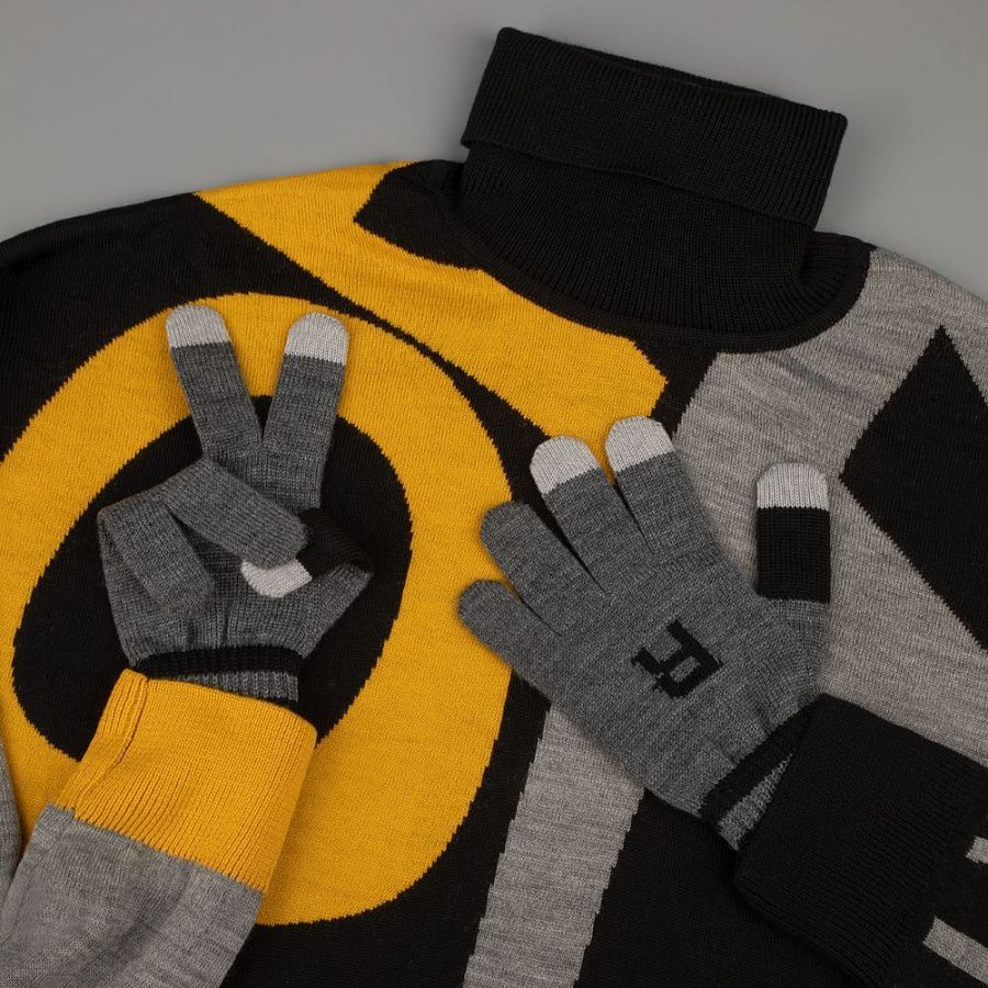 Модель: цельновывязанные бесшовные перчатки с эластичной манжетой и жаккардовым узором в 2-3 цвета. Три пальца: средний, указательный, большой — вяжутся с использованием токопроводящей нити. Манжета может быть полосатой (только горизонтальные полосы 1-2 цветов, без узора и логотипа).