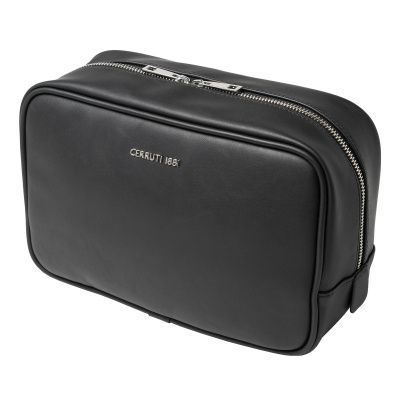 Косметичка "Zoom" с минималистским дизайном и современным видом изготовлена из гладкого черного материала с блестящей хромированной металлической надписью. 1 небольшой внутренний карман на молнии. Поставляется в элегантной хлопковой сумке Cerruti 1881.