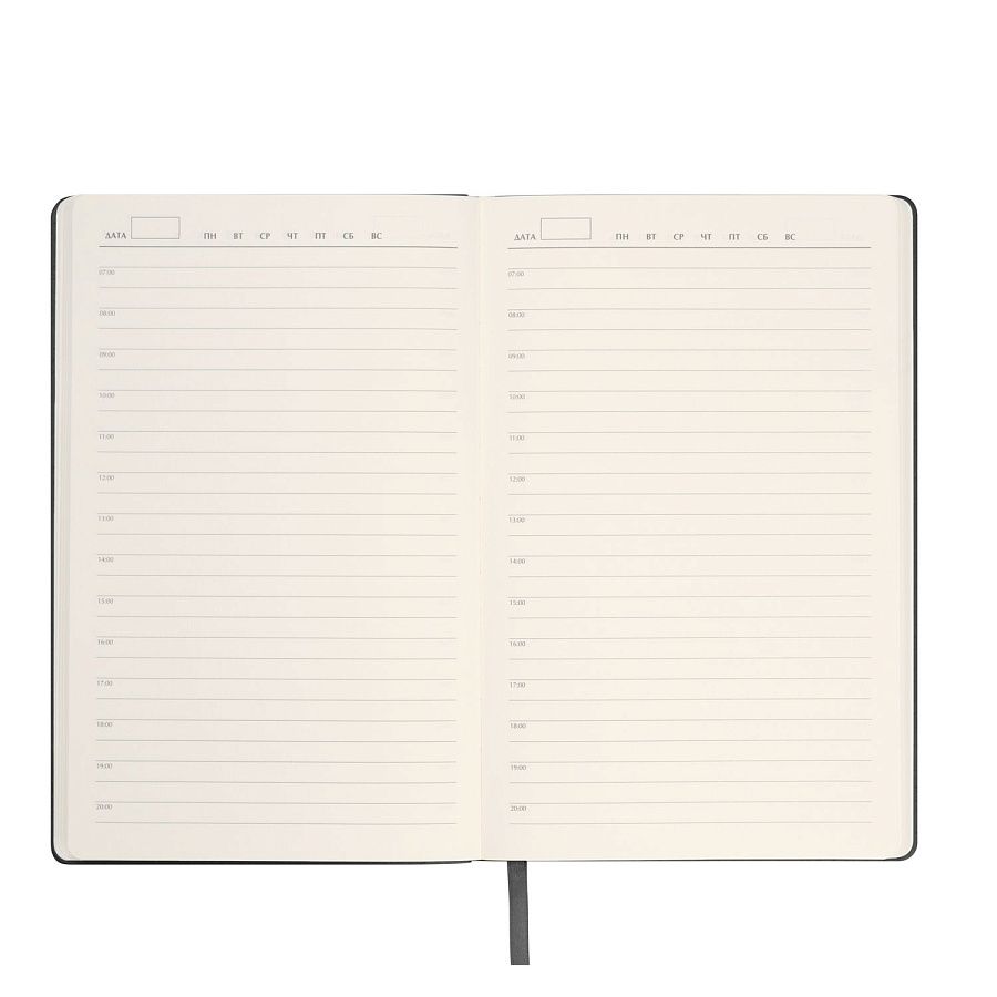 Кремовые форзацы и гладкие шелковистые страницы из офсета со скругленными уголками обеспечат максимальный комфорт при письме. Элегантное атласное ляссе поможет быстро найти нужную страницу. Этот ежедневник — воплощение изысканной простоты и практичности.