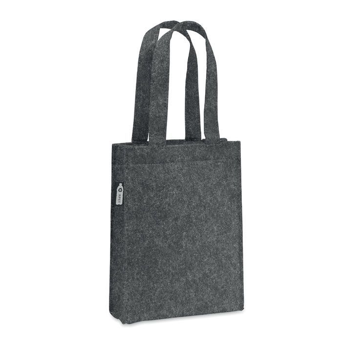 Небольшая подарочная или сувенирная сумка из переработанного войлока RPET с короткими ручками и ластовицей. Толщина войлока: 1 мм.