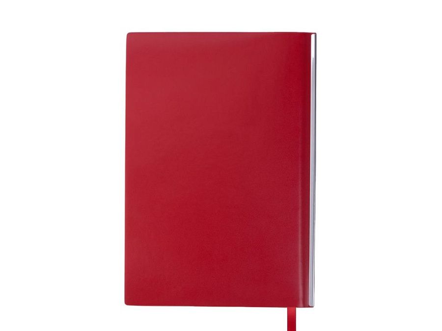 Гибкая обложка выполнена из искусственной кожи, корешок дополнен металлической вставкой.