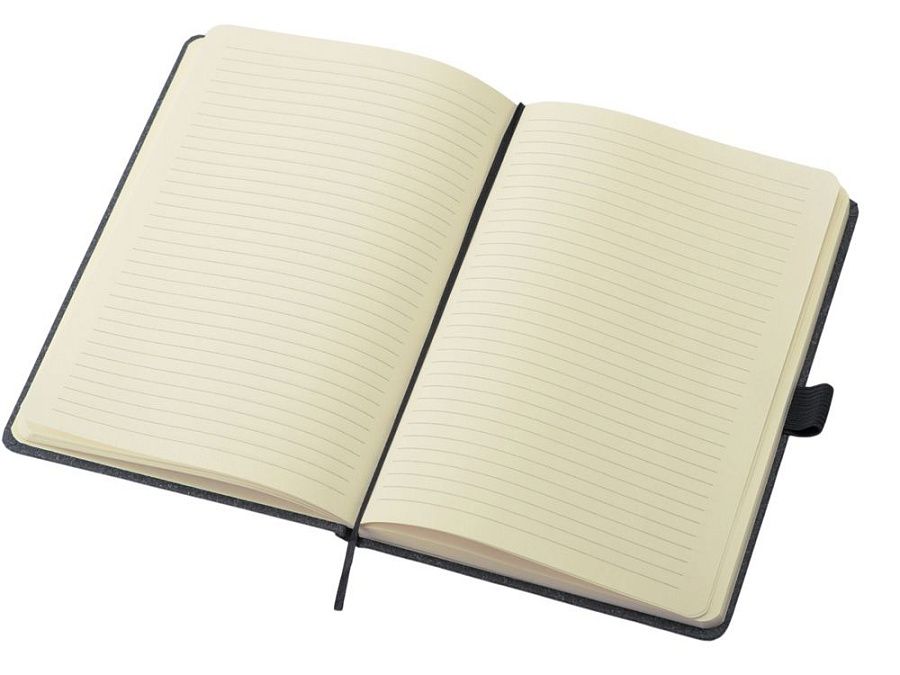 Внутри блокнота 80 листов бежевой бумаги плотностью 70 г/м2. Линовка основного блока в линейку.