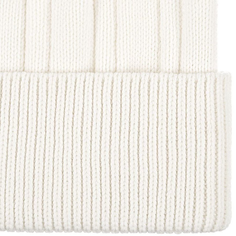 Однослойная шапка фактурной вязки с помпоном и широким отворотом.