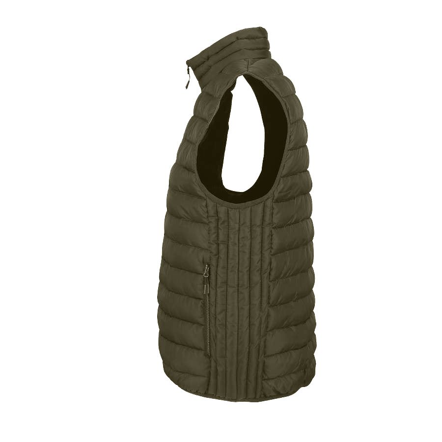 Материал верха и подкладки: таффета 280Т, 100% полиэстер. Наполнитель: биопух (100% полиэстер, плотность 210г м2.Центральная застежка и боковые карманы на нейлоновой молнии в тон изделия.Металлические слайдеры с дополнительными модными пуллерами в тон изделия.Воротник-стойка. Эластичная тесьма по проймам и низу в тон изделия. Дополнительно жилет комплектуется сумкой-мешочком для хранения из основной ткани (но не упаковывается в неё). Цвет, близкий к Pantone 7771 C