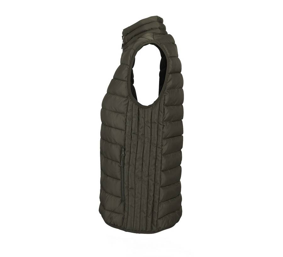 Материал верха и подкладки: таффета 280Т, 100% полиэстер. Наполнитель: биопух (100% полиэстер, плотность 210г м2.Центральная застежка и боковые карманы на нейлоновой молнии в тон изделия.Металлические слайдеры с дополнительными модными пуллерами в тон изделия.Воротник-стойка. Эластичная тесьма по проймам и низу в тон изделия. Дополнительно жилет комплектуется сумкой-мешочком для хранения из основной ткани (но не упаковывается в неё). Цвет, близкий к Pantone 7771 C