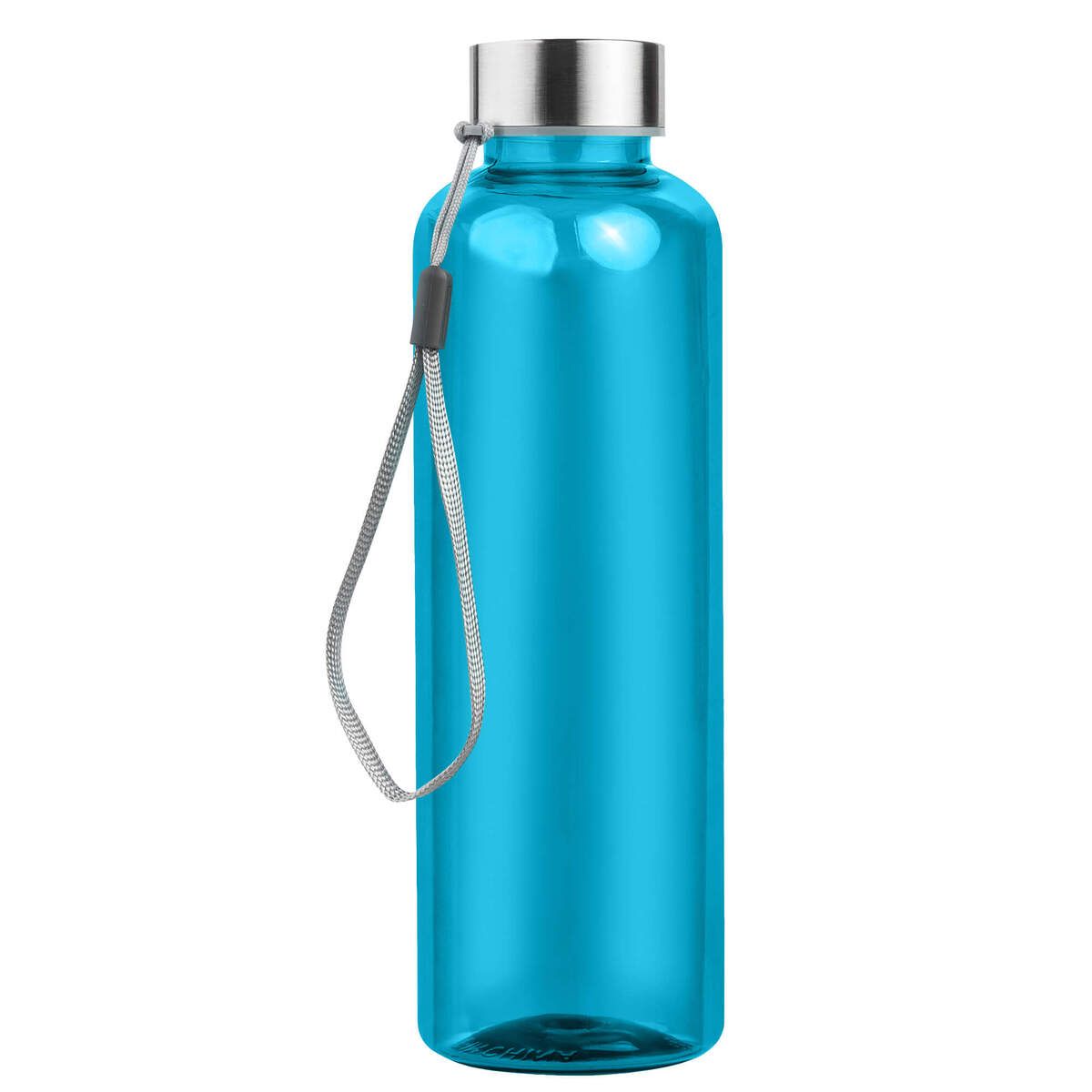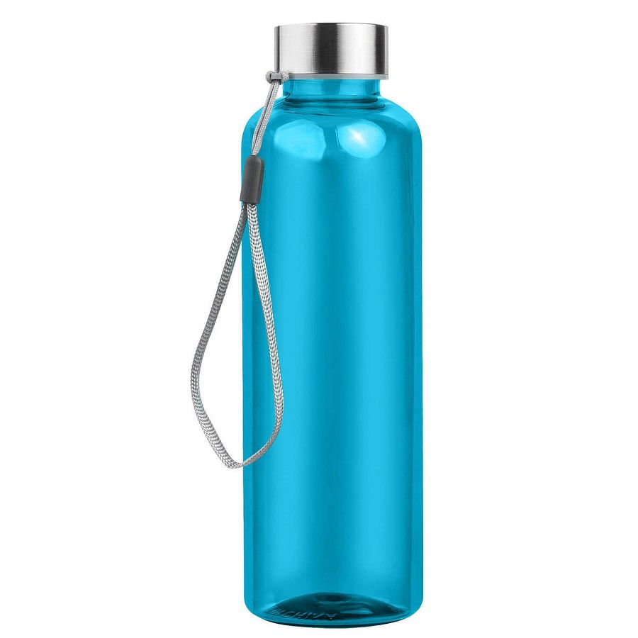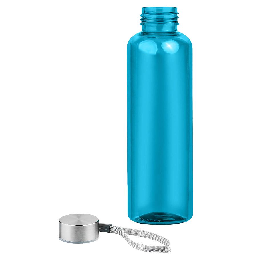 Пластиковая цветная бутылка с металлической крышкой.