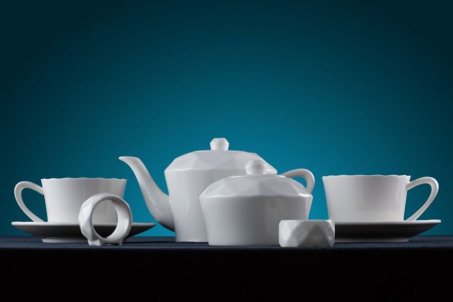 Линейка столовой посуды Diamante Bianco — настоящий бриллиант коллекции Altavolo. Структура и пропорции граней чайника в точности повторяют верхнюю часть бриллианта классической огранки — корону. Присмотритесь — и вы увидите, как играет свет на молочно-белом фарфоре.