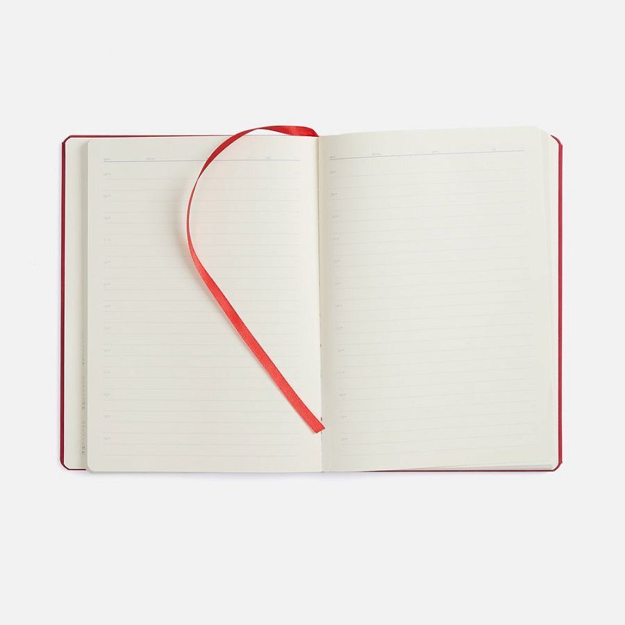 Ежедневник с твердой обложкой, выполнен из материала Nubuck Touch, красный PP, дополнен ляссе в цвет обложки.
