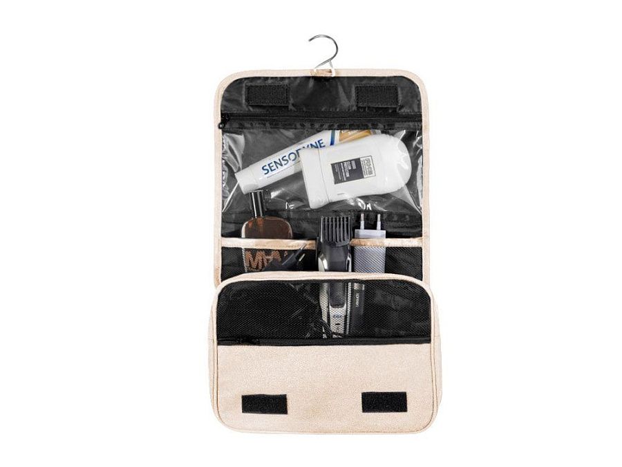 Несессер Planar оснащен металлическим крючком для подвешивания, который в сложенном виде убирается внутрь и не будет вам мешать. Для переноски несессер имеет ручку снаружи, а еще вы найдете плоский вместительный карман на его задней стороне. Клапан несессера закрывается на липучки и имеет три кармана — большой на молнии из прозрачного материала, который легко моется, даже в случае, если флакон изнутри разгерметизировался, и два из сетки, куда можно положить необходимые мелочи и которые удобнее использовать в висящем виде.