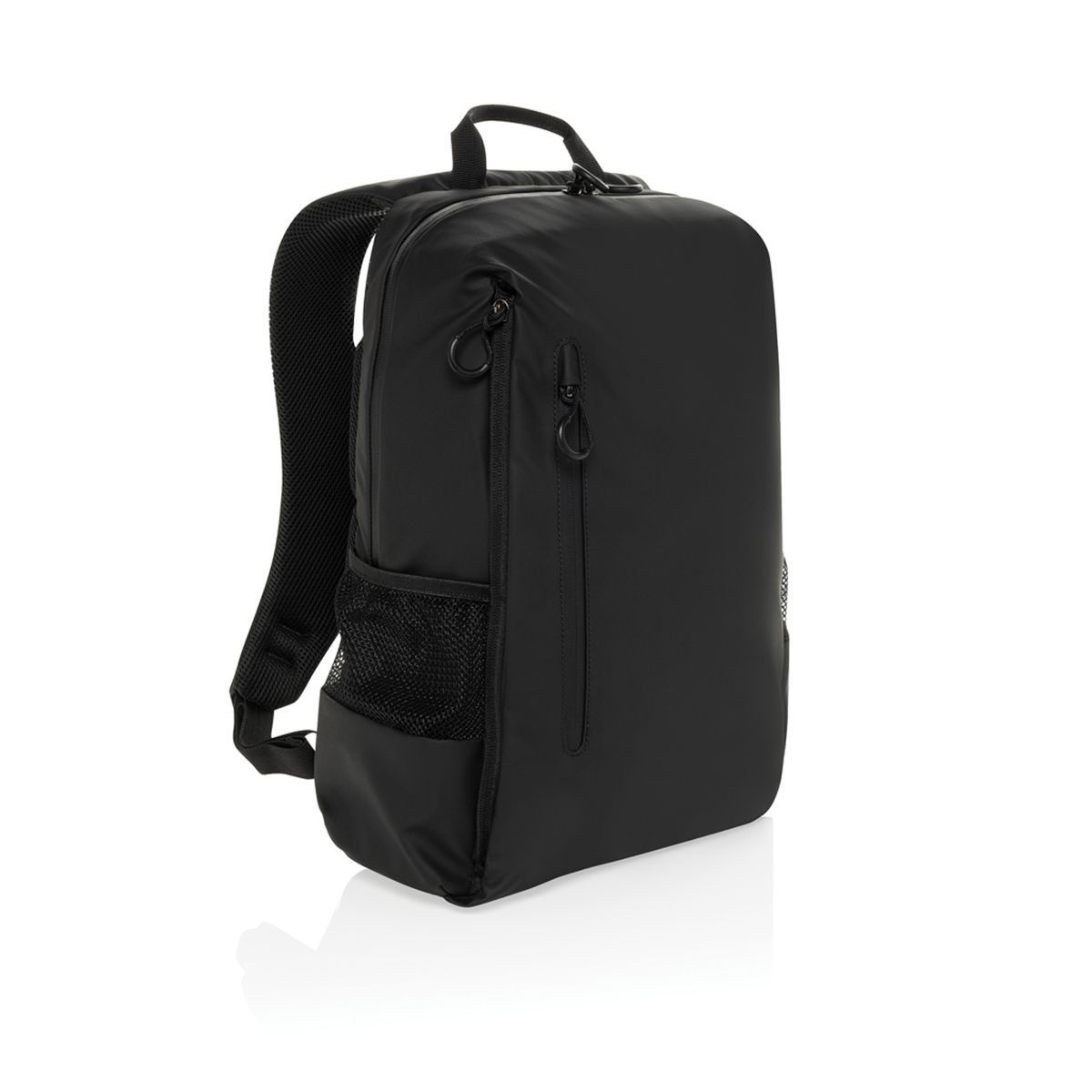 Водонепроницаемый рюкзак для ноутбука Lima выполнен из rPET Aware™ с полиуретановой подкладкой, которая надежно защитит ваш гаджет от намокания. В основном отделении предусмотрен специальный отсек для ноутбука 15.6″ с фиксатором на липучке. Внутри есть карманы с RFID-защитой, а также держатели для ручек, помогающие сохранять порядок. Внешние боковые карманы выполнены из сетки и предназначены для бутылок с водой или зонта. Регулируемые плечевые ремни обеспечивают особый комфорт, а передние и задние водонепроницаемые молнии создают дополнительную защиту от непогоды. Изготовлен из переработанного полиэстера с индикатором AWARE™. Участвует в благотворительной программе: 2% с продаж каждого рюкзака будут переданы в фонд Water.org. Не содержит ПВХ.