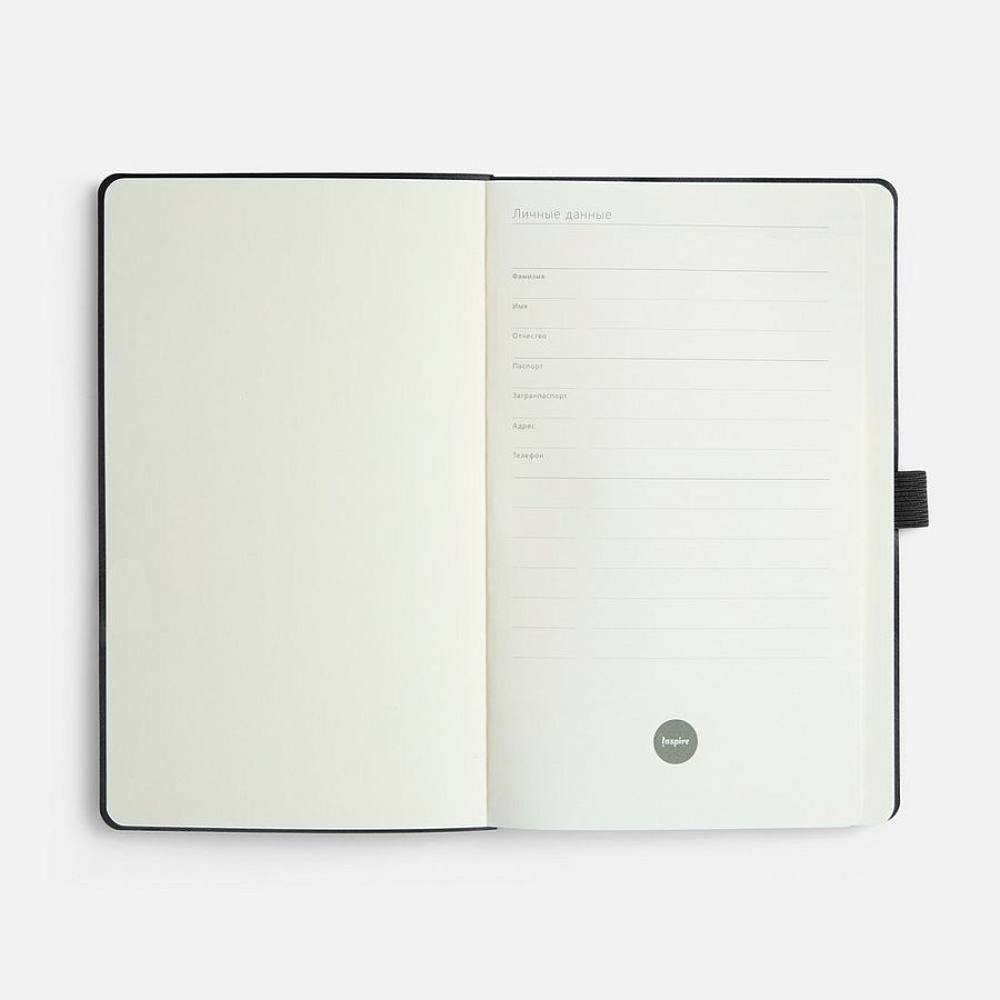 Ежедневник с гибкой обложкой, выполнен из материала Espresso, дополнен цветными ляссе и петлей-резинкой для ручки.