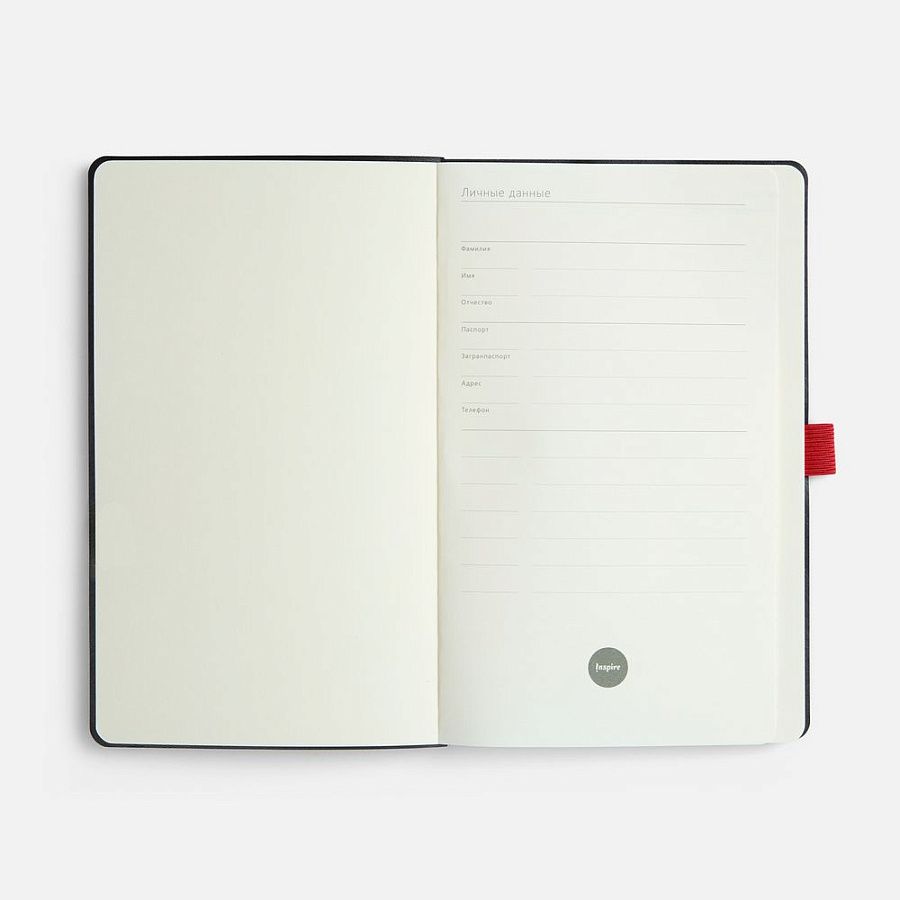 Ежедневник с гибкой обложкой, выполнен из материала Espresso, дополнен цветными ляссе и петлей-резинкой для ручки.