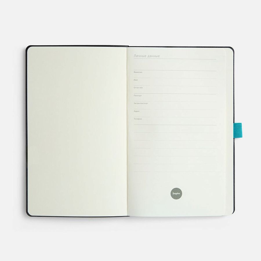 Ежедневник с гибкой обложкой, выполнен из материала Espresso, дополнен цветными ляссе и петлей-резинкой для ручки.