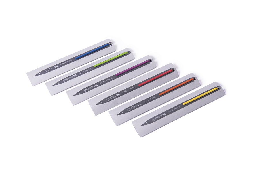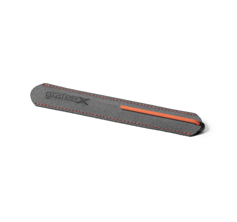 Инновационный, совершенно необычный карандаш с цельным алюминиевым матовым корпусом черного цвета, ярко-оранжевым клипом и пишущим наконечником из материала GrafeeX. GrafeeX - это запатентованный инновационный материал, полученный в результате спекания мелких частиц графита при высоких температурах. То есть он пишет, как обычный графитовый карандаш, но из-за высокой плотности материала крайне экономно расходуется, и его хватает очень надолго. Карандаш вкладывается в элегантный темно-серый чехол с контрастной прострочкой в цвет клипа, сшитый вручную из рециклированной кожи. GrafeeX станет идеальным помощником в повседневной жизни: для заметок, для набросков или просто для записи идей на бумаге.