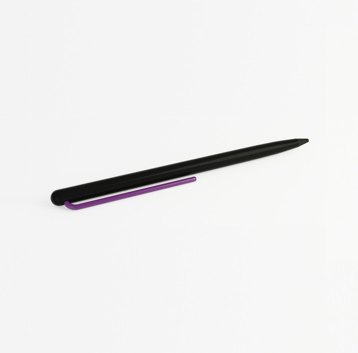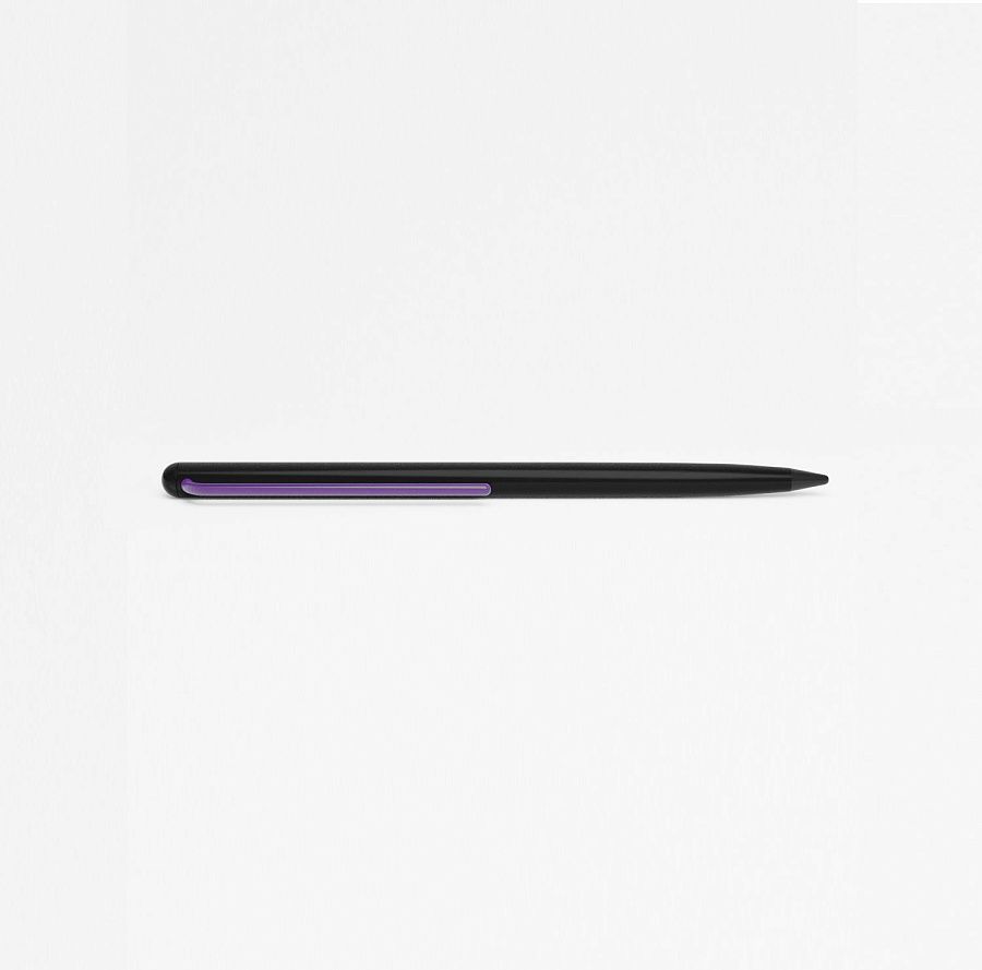 Инновационный, совершенно необычный карандаш с цельным алюминиевым матовым корпусом черного цвета, ярким фиолетовым клипом и пишущим наконечником из материала GrafeeX. GrafeeX - это запатентованный инновационный материал, полученный в результате спекания мелких частиц графита при высоких температурах. То есть он пишет, как обычный графитовый карандаш, но из-за высокой плотности материала крайне экономно расходуется, и его хватает очень надолго. Карандаш вкладывается в элегантный темно-серый чехол с контрастной прострочкой в цвет клипа, сшитый вручную из рециклированной кожи. GrafeeX станет идеальным помощником в повседневной жизни: для заметок, для набросков или просто для записи идей на бумаге.