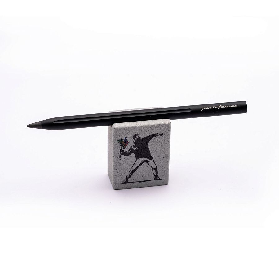 Набор из лимитированной коллекции с культовыми граффити Banksy Метатель цветов/Rage, Flower Thrower. Инновационный, совершенно необычный карандаш Pininfarina SMART с цельным алюминиевым матовым корпусом черного цвета и сменным пишущим наконечником из материала GrafeeX. На торце карандаша граффити Banksy сердце на желтом фоне. GrafeeX - это запатентованный инновационный материал, полученный в результате спекания мелких частиц графита при высоких температурах. То есть он пишет, как обычный графитовый карандаш, но из-за высокой плотности материала крайне экономно расходуется, и его хватает очень надолго. Длина карандаша 15,3 см, диаметр 0,9 см, вес 25 гр. В набор входит бетонная подставка с граффити, изготовленная вручную, на которую кладется этот карандаш, становясь оригинальным арт-объектом на вашем столе. Сделано в Италии.