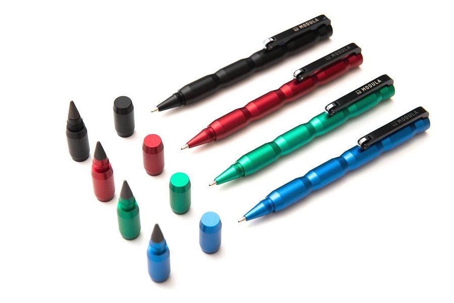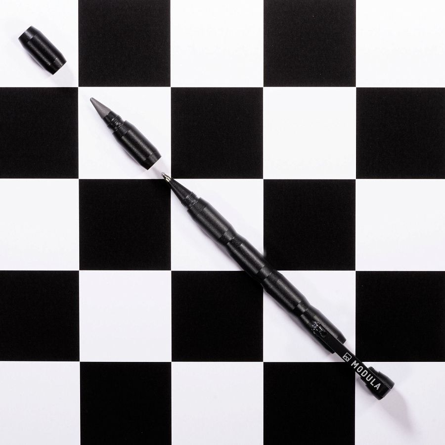 Ручка-трансформер из коллекции Pininfarina Modula черного цвета создана Pininfarina в сотрудничестве с итальянским дизайнером Луиджи Тренти. Получился совершенно необычный пишущий инструмент, сочетающий в себе шариковую ручку и карандаш. Корпус сделан из алюминия и имеет два независимых пишущих узла: шариковую ручку и карандаш со сменным наконечником из материала GrafeeX. GrafeeX - это запатентованный инновационный материал, полученный в результате спекания мелких частиц графита при высоких температурах. То есть он пишет, как обычный графитовый карандаш, но из-за высокой плотности материала крайне экономно расходуется, и его хватает очень надолго. Modula - это своеобразный конструктор, так как она может быть составлена по-разному, вплоть до укорачивания, вследствие того, что один из двух наконечников можно убрать. Оригинальный дизайн клипа. Длина ручки 15 см, диаметр 0,6 см, вес 22 гр. Упакована в черную коробку из дизайнерского многослойного картона 15х3,5х2 см. Вес в упаковке 62 гр. Сделана в Италии.
