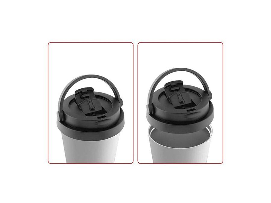 Термоизоляция защищает корпус от нагрева при хранении горячих напитков и от появления конденсата от холодных. Поэтому термостакан безопасно держать в руках и ставить на любые поверхности. Такой термопосуде не нужна традиционная ручка, но для удобства переноски предусмотрена поворотная ручка на крышке. В сложенном виде она интегрируется в плоскость крышки, плотно фиксируется за счет специального выступа и не мешает при питье. В процессе выпивания напитка крышку можно не снимать – в её конструкции предусмотрен откидной клапан, который легко открывается и закрывается одной рукой. Он защищает напиток от попадания пыли внутрь, а также минимизирует влияние температуры окружающей среды, способствуя сохранению напитка горячим или холодным длительное время. В положении «открыто» клапан плотно фиксируется в плоскости крышки и не опрокидывается при питье. В крышке предусмотрены два отверстия – питьевое и воздушное для обеспечения плавного потока жидкости.