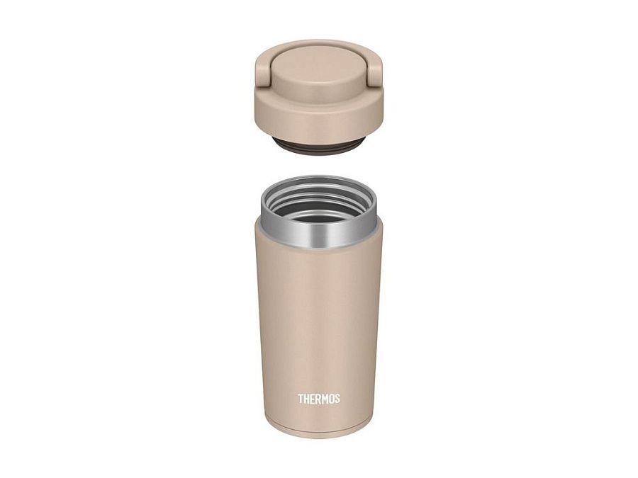 Термоизоляция защищает корпус от нагрева при хранении горячих напитков и от появления конденсата от холодных. Поэтому термостакан безопасно держать в руках и ставить на любые поверхности. Современный стиль термостакану придаёт эргономичная форма и покрытие песочного цвета, отличающегося износостойкостью. Компактный термостакан совместим с большинством кофемашин и подходит для размещения в автомобильном подстаканнике.