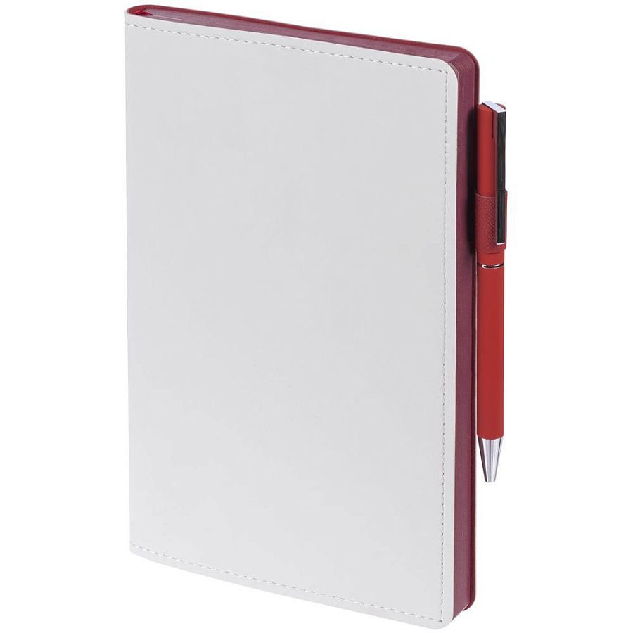 Гибкая обложка, материал обложки — Soft Touch, белый BB и Latte, черный АА; материал петли для ручки — Nice Touch, черный АА. Срез обложки окрашен в черный цвет.