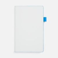 Гибкая обложка, материал обложки — Soft Touch, белый BB и Latte, голубойJJ; материал петли для ручки — Nice Touch, голубойJJ. Срез обложки окрашен в голубой цвет.