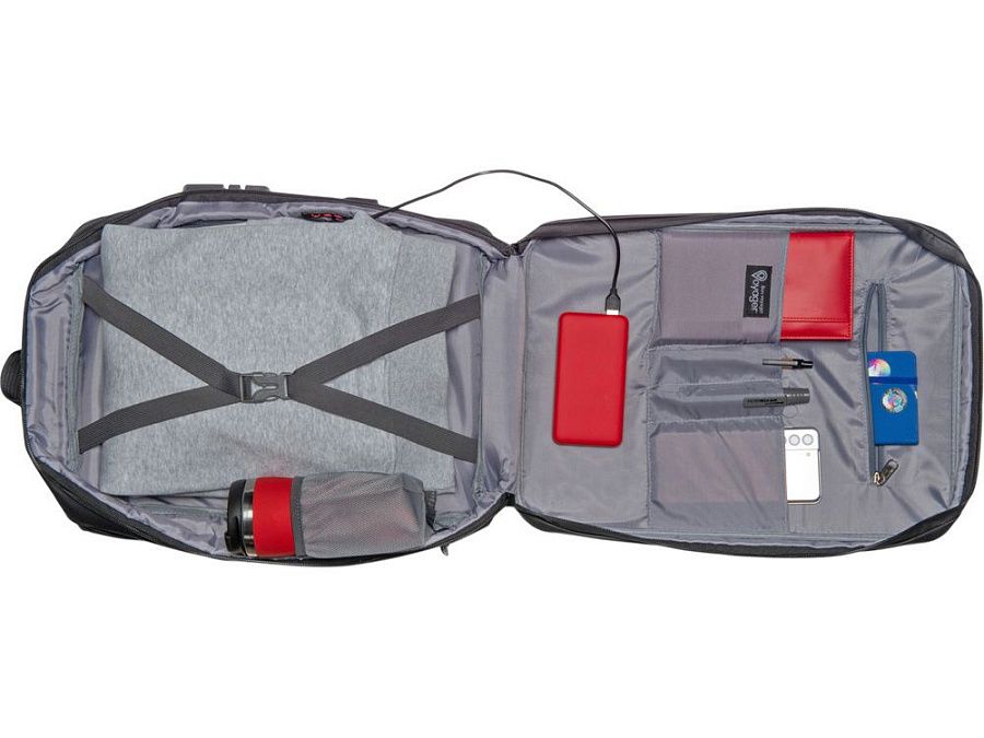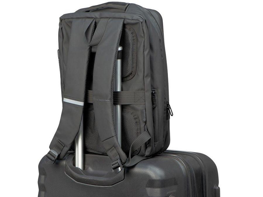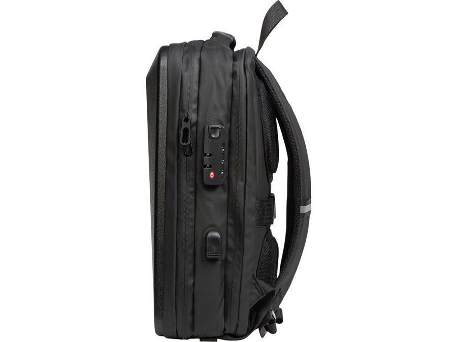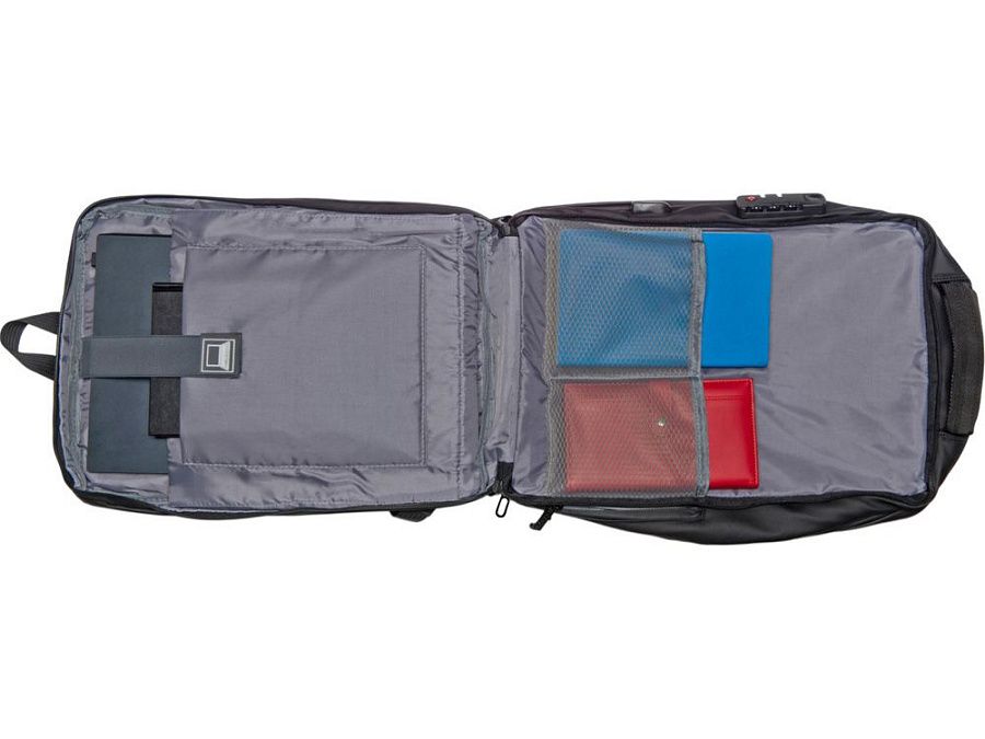 Водостойкий бизнес-рюкзак с пластиковой панелью спереди выглядит стильно и обеспечивает бережное хранение ваших личных вещей. Подходит для передвижений по городу и деловых поездок. 2 вместительных отделения позволяют разместить все необходимое: большое отделение для одежды с фиксирующими ремнями и органайзером, меньшее отделение с карманами для ноутбука и планшета и сетчатым органайзером. Несанкционированный доступ к содержимому вашего рюкзака будет затруднён благодаря кодовому замку и прочной пластиковой панели спереди. В рюкзаке предусмотрено много дополнительных удобств для использования:
