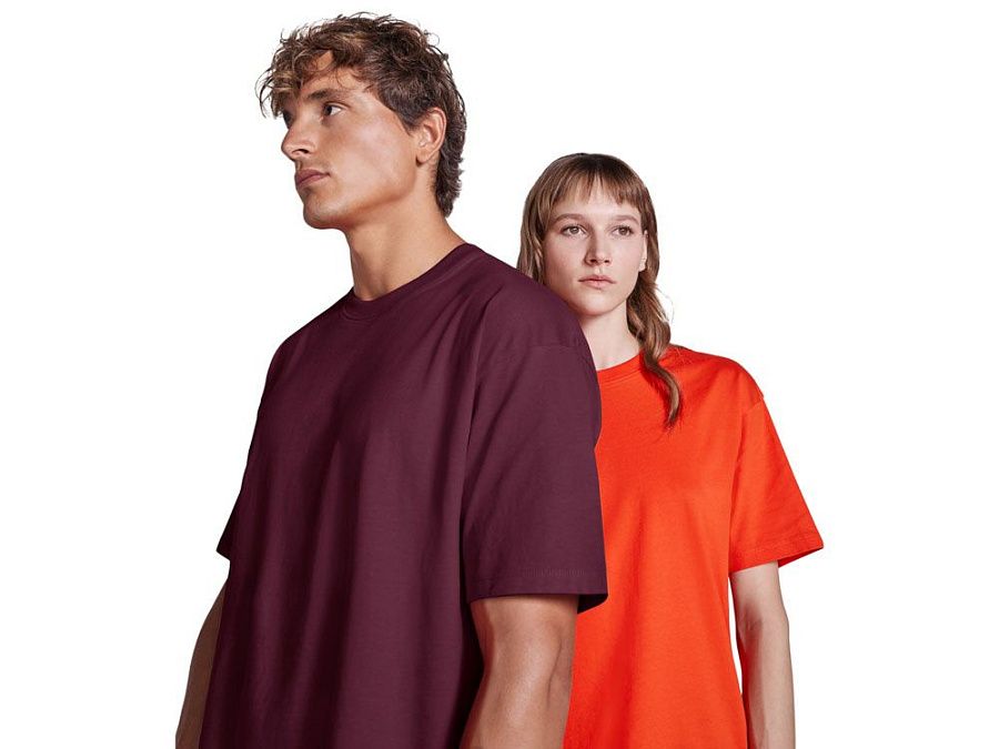 Оверсайз футболка с коротким рукавом. Круглый вырез горловины обработан рибом 2х1. Боковые швы. Широкая двойная отстрочка по рукавам и низу.