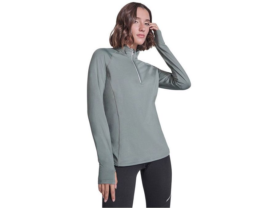 Лонгслив с рукавом реглан из технологического плотна, ворот на молнии со светоотражающей деталью. Усиленные швы. Манжеты с отверстием для большого пальца. Светоотражающая деталь на спинке. Низ спинки длиннее переда. Изнанка с теплым начесом.