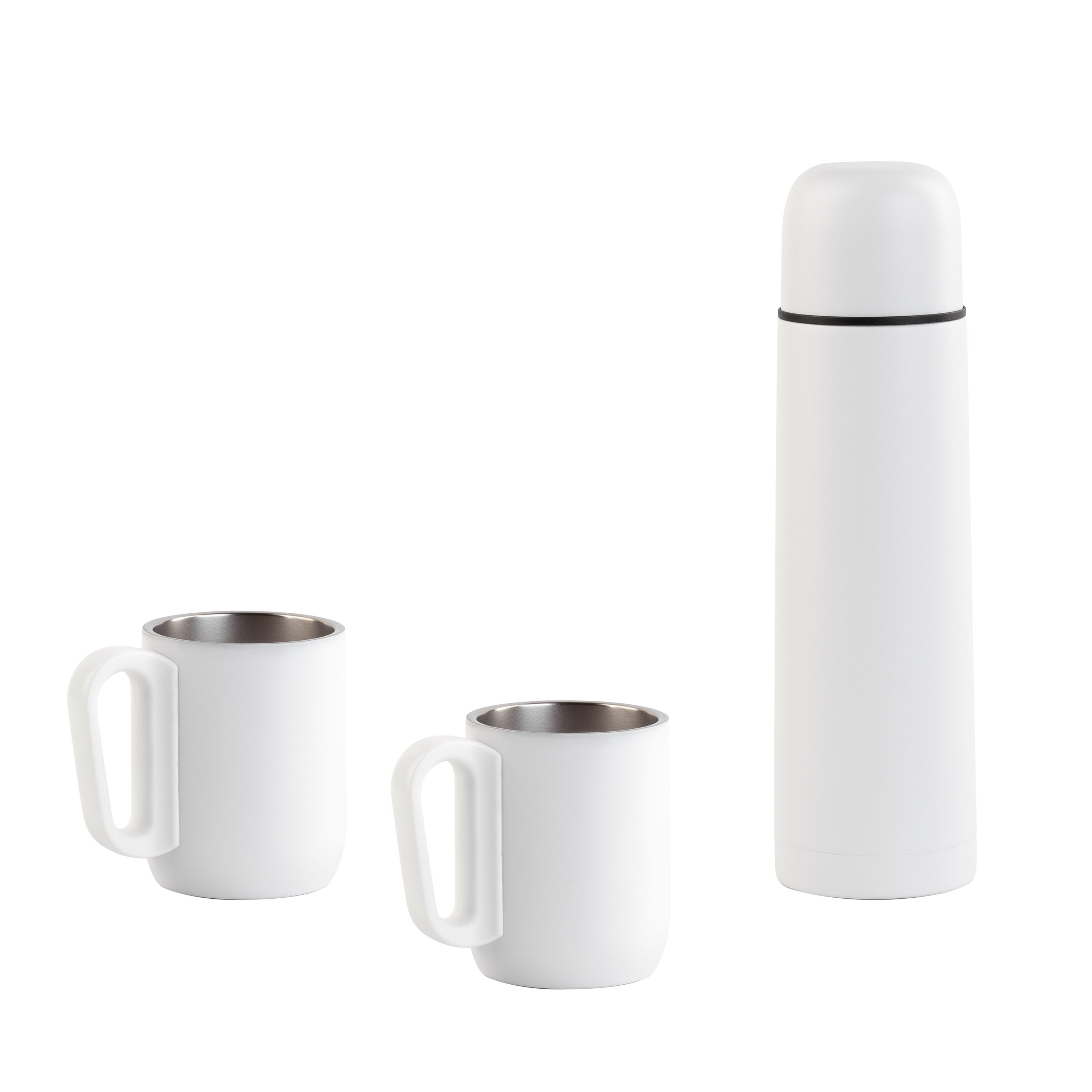 Набор изготовлен из пищевой нержавеющей стали с защитным покрытием powder (пудра - порошковая краска). Сумка-чехол с регулируемым ремешком дополнительно сохранит температуру, защитит набор от внешних неблагоприятных факторов и сделает вид более презентабельным. Набор «Гейзер» обладает широкими возможностями персонализации на сумке-чехле, термосе и кружках. Гармоничный дизайн набора «Гейзер» и его функциональность приятно удивят получателя.