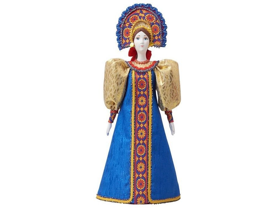 1. Фарфоровая кукла в народном костюме ручной работы: