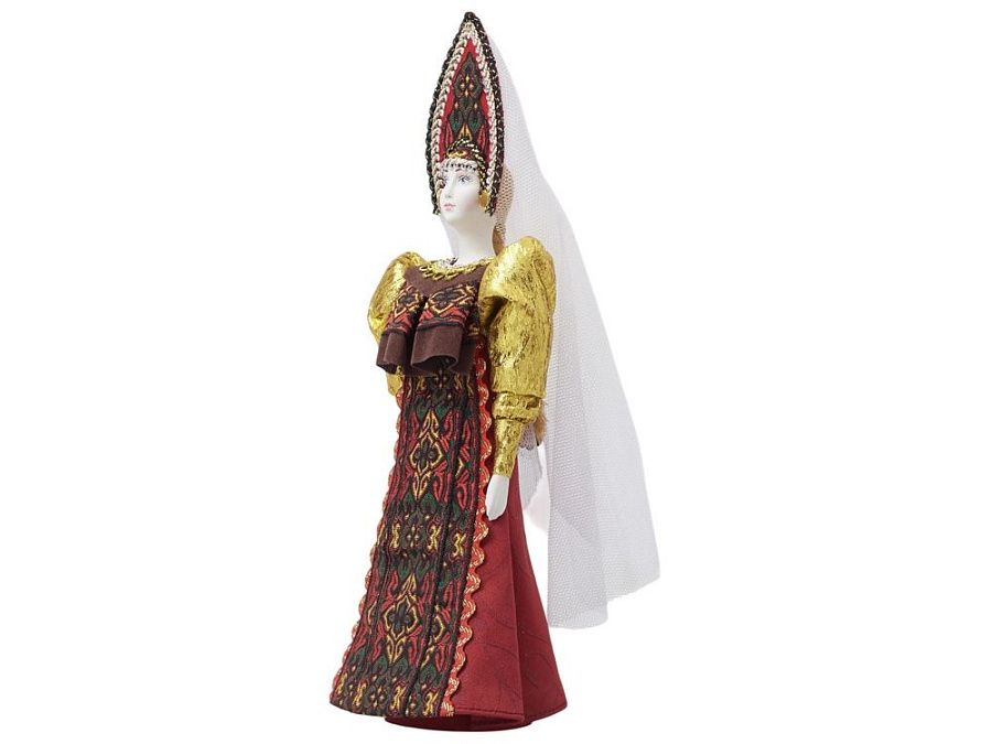 - Фарфоровая кукла в народном костюме ручной работы: расписной сарафан и кокошник с традиционной вышивкой воссоздают образ русской красавицы.