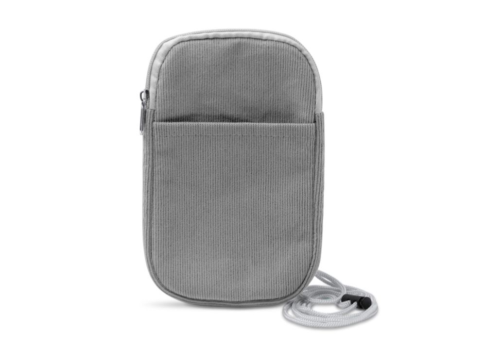 Сумка для мобильного телефона из мягкой вельветовой ткани. Основное отделение закрывается на молнию в тон. Снаружи удобный карман. В комплект входит ремешок для переноски в тон.