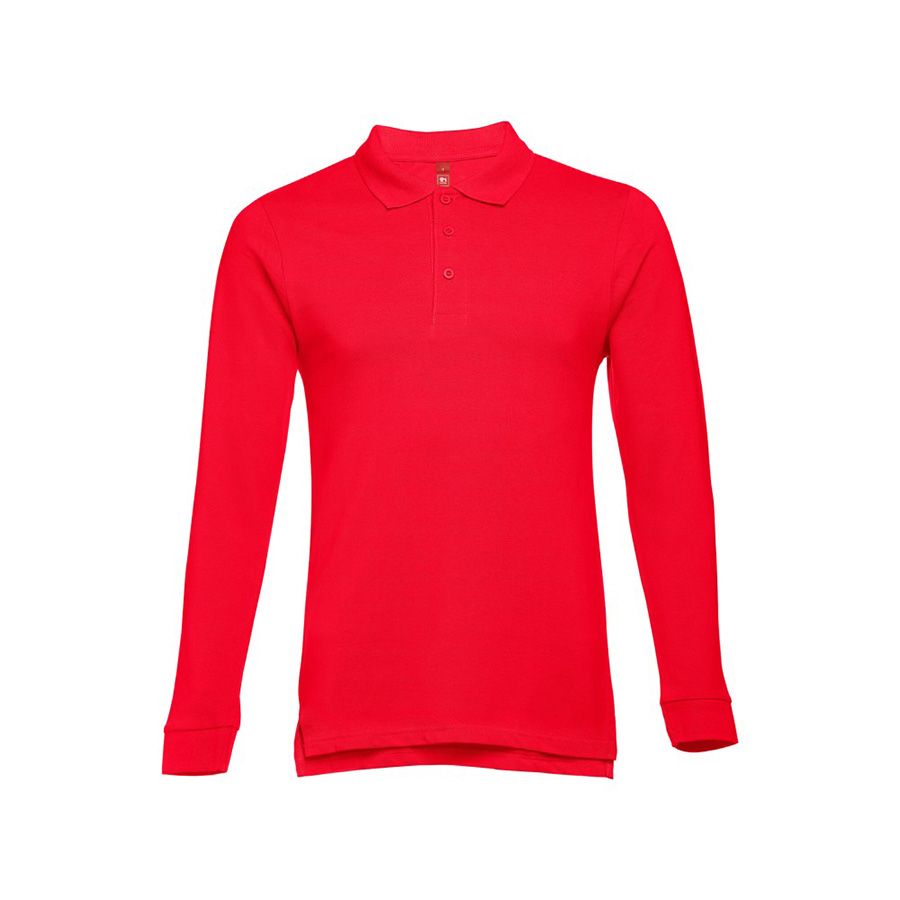 Мужская рубашка-поло с длинным рукавом из хлопковой ткани-пике. Полотно футболки упругое и гладкое благодаря обработке ферментами "enzyme wash" и сохраняет форму при стирке. Модель полуприлегающего силуэта. Благодаря манжете из риба 1х1 рукав смотрится очень аккуратно. Воротник также выполнен из риба 1х1, внутри ворота - укрепляющая тесьма по горловине. Планка с 3 пуговицами в цвет основной ткани изделия. Запасная пуговица на ярлыке во внутреннем боковом шве.Цвет, близкий к Pantone 200 C
