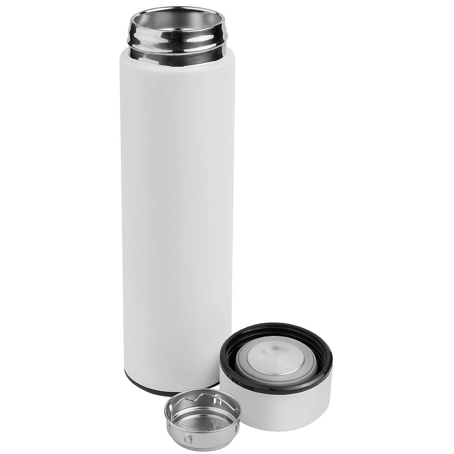 Термос из нержавеющей стали с покрытием soft-touch. Крышка в цвет термоса с покрытием soft-touch в верхней части имеет металлическую пластину для подолнительного брендирования. Крышка герметично закручивается. Термос поставляется в комплекте с ситечком. При комнатной температуре сохраняет тепло до 24 часов.