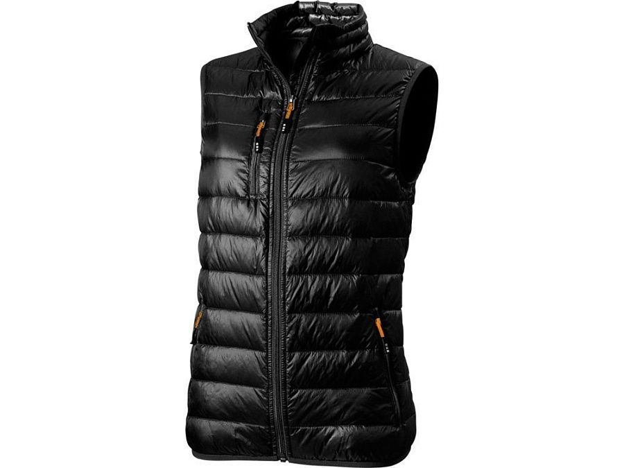 Женская пуховая жилетка Fairview. Стандартный покрой. Ткань не пропускает пух. Карманы для рук и нагрудный на молнии. Внутренний противоветровой клапан и защита подбородка. Эластичная обшивка внизу и на проймах. Ткань дышащая, ветронепроницаемая и влагоотталкивающая. Отражающий лого сзади. Ремешки на собачку (второй комплект в цвете антрацит). Жилет - версия победителя премии Reddot, куртки Scotia. Ткань из 100% нейлона с матовым и блестящим водоотталкивающим покрытием, 20D. 80% пух и 20% перо.