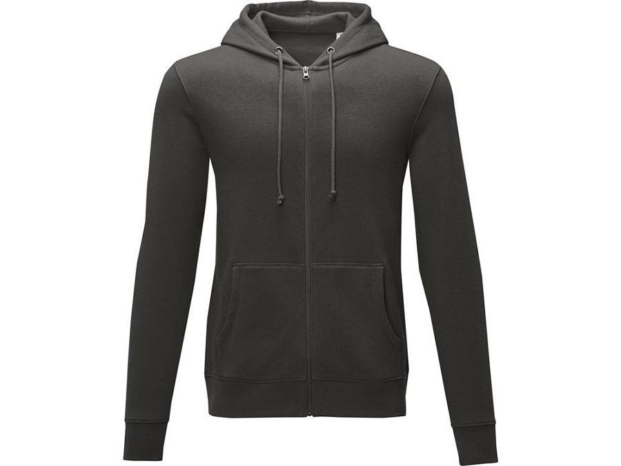 Мужская толстовка на молнии Theron. Основная этикетка, которую можно оторвать или отрезать, без неудобных пришитых ярлыков. Завязки на капюшоне. Расположенная по центру молния. Карман «кенгуру». С подшивкой из гладкого трикотажа в рубчик. С манжетами из гладкого трикотажа в рубчик. Внутренняя сторона покрыта ворсом. Тесьма из основного материала по внутренней стороне горловины. Трикотаж 50% Хлопок, 50% Полиэстер, 240 g/m2.