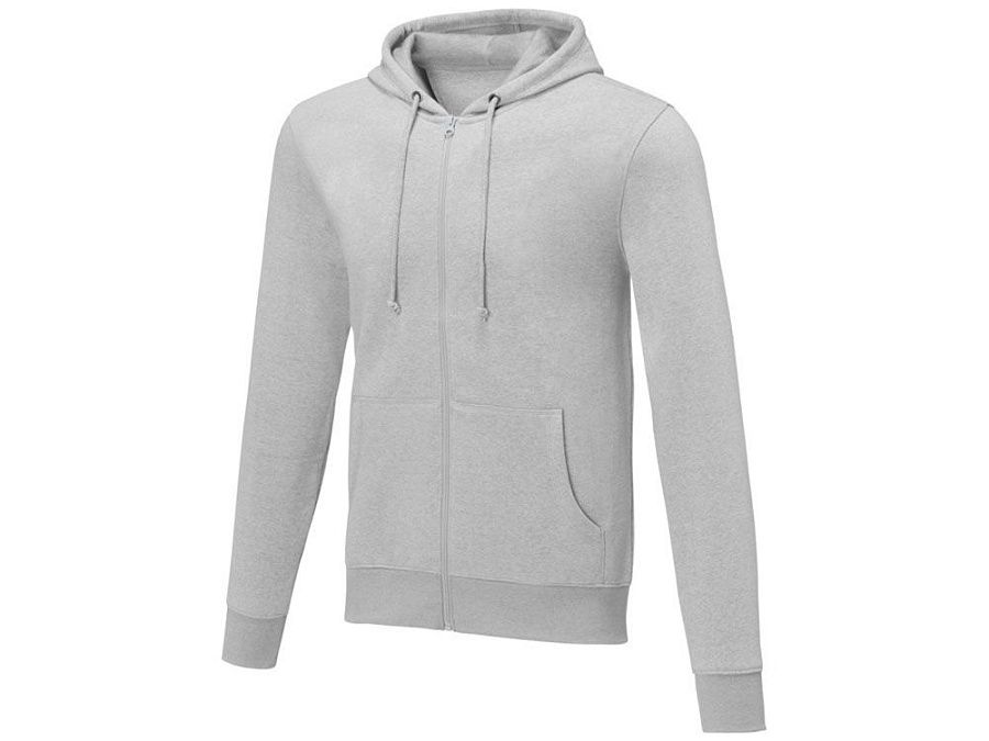 Мужская толстовка на молнии Theron. Основная этикетка, которую можно оторвать или отрезать, без неудобных пришитых ярлыков. Завязки на капюшоне. Расположенная по центру молния. Карман «кенгуру». С подшивкой из гладкого трикотажа в рубчик. С манжетами из гладкого трикотажа в рубчик. Внутренняя сторона покрыта ворсом. Тесьма из основного материала по внутренней стороне горловины. Трикотаж 50% Хлопок, 50% Полиэстер, 240 g/m2.