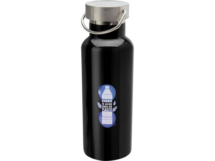 Прочная бутылка для воды из нержавеющей стали с двойными стенками, вакуумной изоляцией, сертифицированная RCS, с завинчивающейся крышкой из нержавеющей стали и прочной ручкой-петлей из нержавеющей стали. Объем: 500 мл. Герметичность. Уложена в подарочную коробку. RCS certified recycled stainless steel.