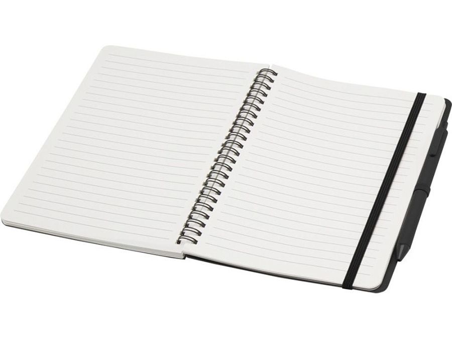 Блокнот Thalaasa формата A5 в твердой обложке изготовлен из переработанного океанического пластика и содержит 80 линованных листов кремовой бумаги плотностью 70 г/м². Блокнот имеет закругленные углы, эластичную застежку и петлю для ручки. Шариковая ручка с черными чернилами также изготовлена из переработанного океанического пластика. Длина непрерывной линии: 1000 метров. Размер пера: 1,0 мм.